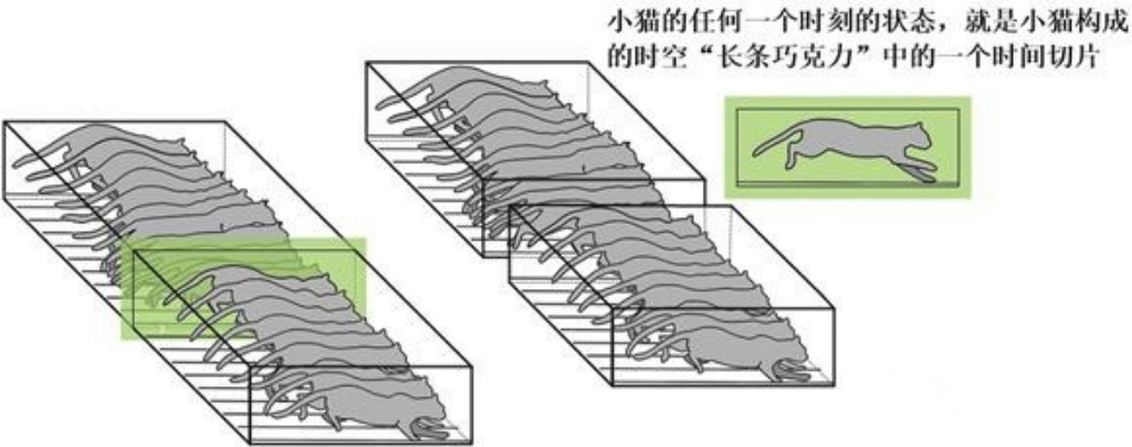 由于智力的限制,我们把时间和空间用不同的词分来表述。另外用一些介词把偌大的空间分割出一小部分,让我们把注意力定位到某个对象分割出来的空间处。